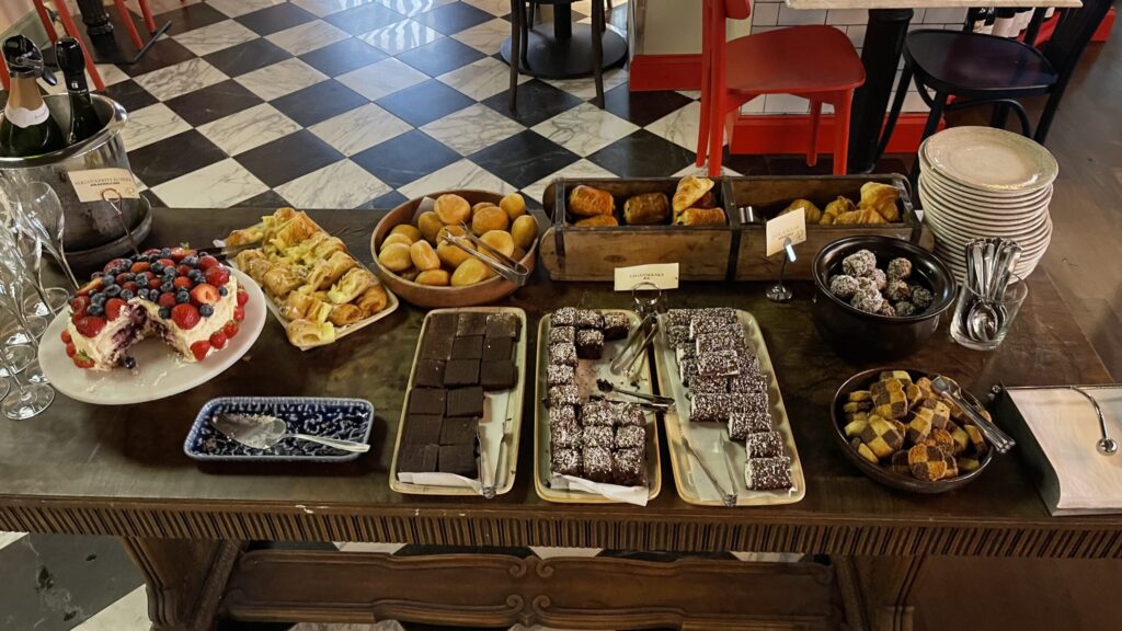 Här kommer lite bonusbilder, vi hamnade visst på AGs i NK-huset med! Inte nog med det, vi lyckades träffa Peter och äta brisket och störda mängder kycklingvingar, mycket bra. Avslutningvis en bild på hotellets frukostbuffé, nomnom.